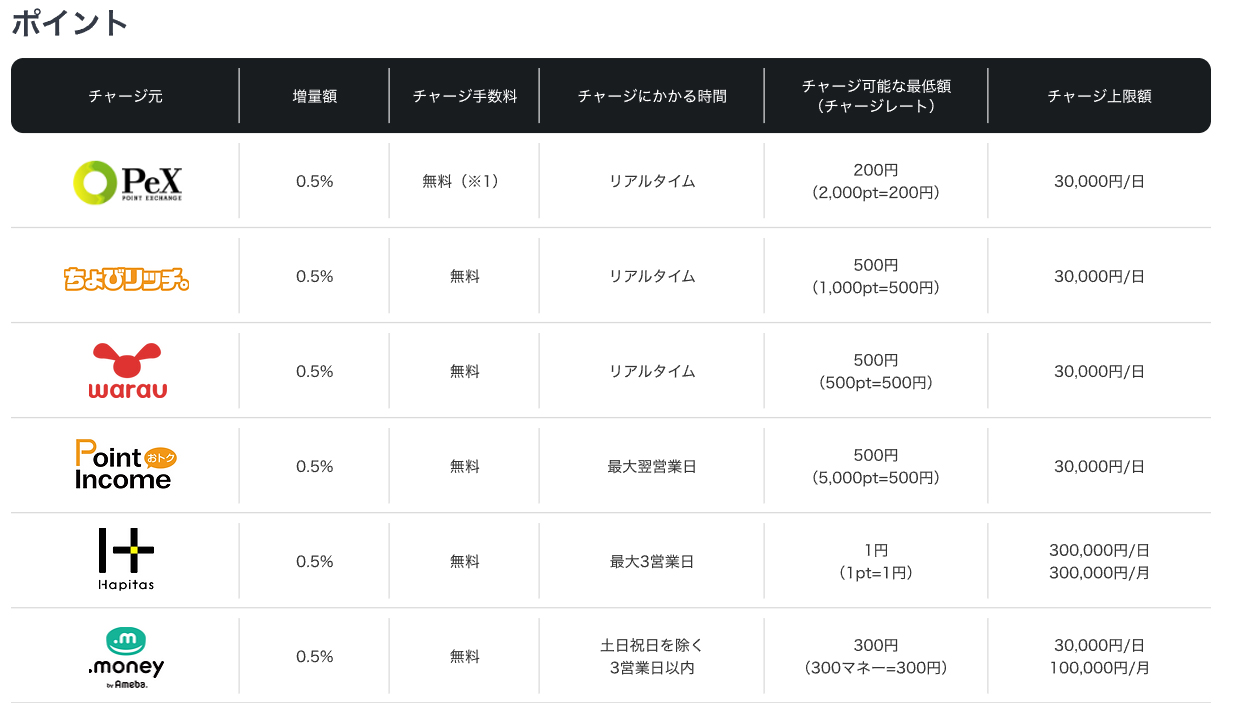 ハピタスポイントは現金換金と別枠で月30万円までチャージ可能
